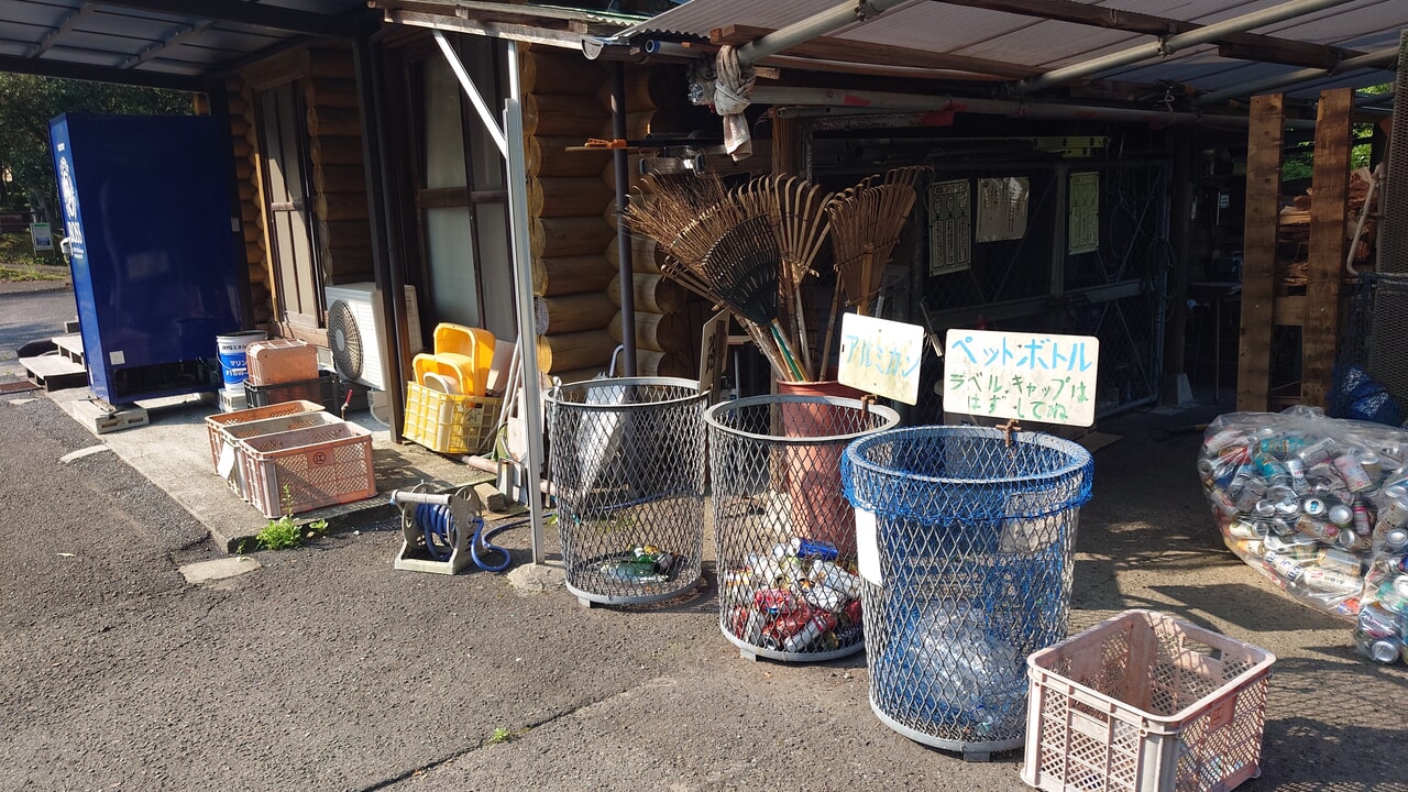 管理棟の裏にゴミ捨て場があります。指定のゴミ袋は無料で頂けて、きちんと仕分けをしたら捨てて帰れるので有り難いです。