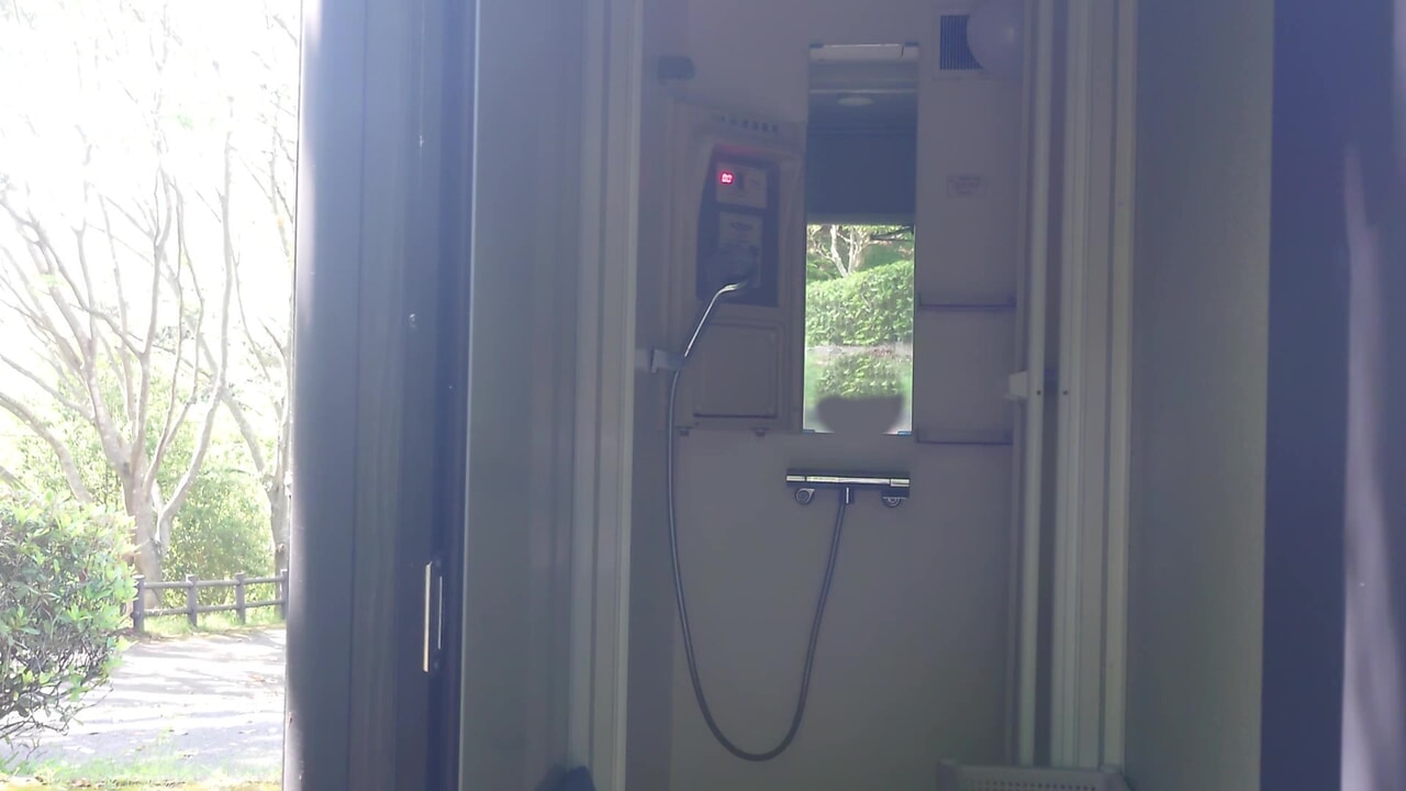 トイレの前に仮設シャワーが2つあります。コイン式で綺麗に清掃されていました。