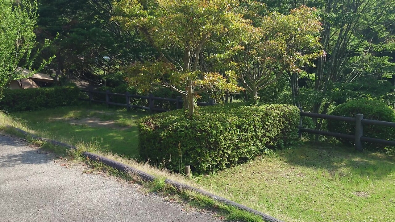 元々の区画が狭いので現在は2区画を統合して1区画として使用しています。それでもファミリー用の大型テントを張るのは難しそうです。ただし、ソロテントなら十分な広さ。植木で区切られているので視線も遮られて快適でした。場所によって電源BOXがあるので追加料金(510円)で使用可能です。